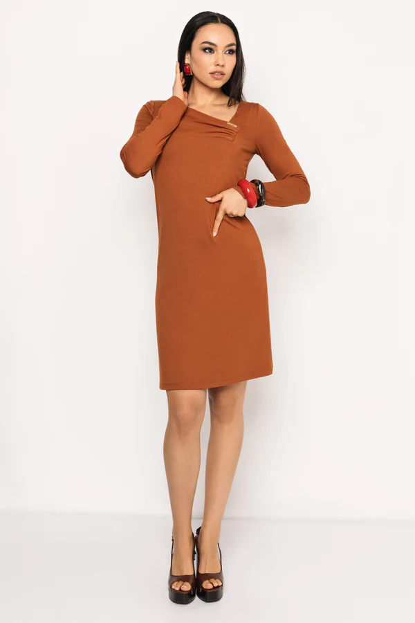 Az AMNESIA Heli ruha modern, nőies megjelenést biztosít letisztult szabásvonalával és különleges részleteivel. Viszkóz anyaga könnyed és kellemes viselet, amely szépen követi a test vonalát. A ruha aszimmetrikusan megoldott, finoman ráncolt nyakkivágással rendelkezik, amely elegáns karaktert ad az alapdarabnak, miközben az egyenes vonalú, térdig érő sziluett időtlen stílust képvisel.