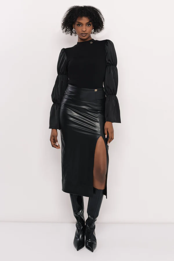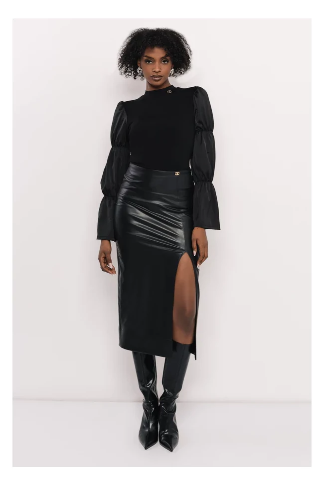 A műbőr a bőr elegáns hatását idézi meg, miközben állatbarát és modern alternatívát kínál. Tartós, könnyen tisztítható, és hosszú ideig megőrzi fényes felületét, formáját. A letisztult textúra különleges karaktert kölcsönöz a daraboknak, legyen szó zakóról, nadrágról vagy kiegészítőről.