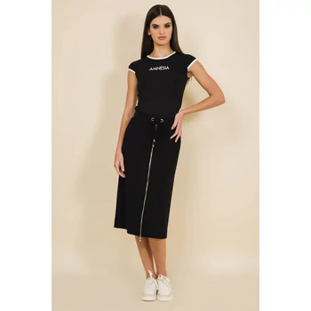 | Egy sportos maxi szoknya egy ruhatárból sem hiányozhat. Az AMNESIA Odera szoknya libbenő, könnyű, punto anyaga, vagány cipzára és trendi zsebei a kedvenceddé teszi majd ezt a darabot. Viseld AMNESIA Kiso felsővel, vagy egy különleges inggel! Válaszd fekete vagy homok színben! | |