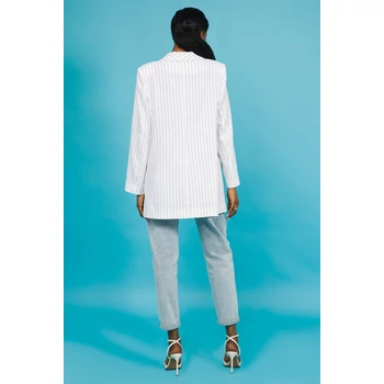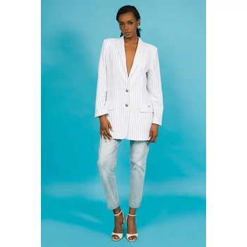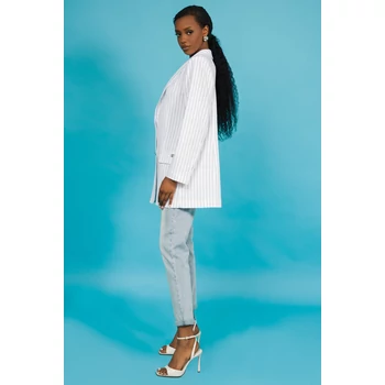 A klasszikus fazon és a nőies sikk tökéletes fúziója az AMNESIA Remi zakó. Karcsúsított, hosszított fazonja nyújtja az alakot, miközben a fehér-fekete csíkos len anyag modern üzleti stílust sugall. Viseld farmerrel vagy egy hozzá illő AMNESIA szoknyával, és garantáltan nem maradsz észrevétlen. A modell magassága: 175 cm. |