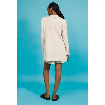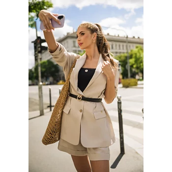 A klasszikus fazon és a nőies sikk tökéletes fúziója az AMNESIA Remi zakó. Karcsúsított, hosszított fazonja nyújtja az alakot, miközben a fehér-fekete csíkos len anyag modern üzleti stílust sugall. Viseld farmerrel vagy egy hozzá illő AMNESIA szoknyával, és garantáltan nem maradsz észrevétlen. A modell magassága: 175 cm. |