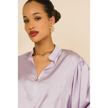 Egy nő ruhatárából sem hiányozhat egy fényes, sifon, oversize ing, amely bármely look-hoz bármilyen évszakban bevethető. Az AMNESIA Eman ing elegáns kiegészítője a basic szettjeidnek, nadrággal és szoknyával is tökéletes párost alkot. Válaszd zöld vagy lila színben! A modell magassága: 174 cm. |