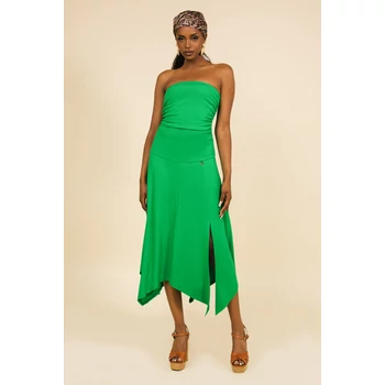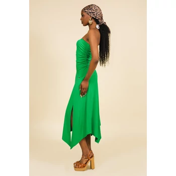 Az AMNESIA Tunisz ruha puha, könnyed anyagból készül, mely finoman követi a test vonalát, mégis szabad mozgást enged. A felsőrész kiemeli a dekoltázst, míg a hosszú, aszimmetrikus szegély játékos, modern sziluettet kölcsönöz. A magas oldalsó sliccek extra mozgásszabadságot biztosítanak minden lépésnél – hordhatod papuccsal a nyári napokon, de magassarkúval egy esti programhoz is tökéletes választás. Elérhető életteli málna és friss brazil zöld árnyalatban – válaszd ki a kedvenced árnyalatodban az amnesia.hu-n, és rendeld meg még ma!