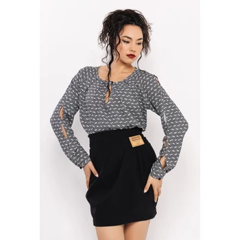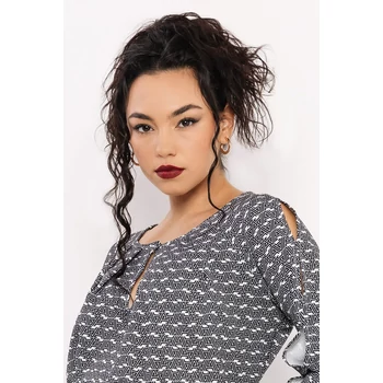Az AMNESIA Meshi felső a különleges részletek kedvelőinek tökéletes választás. Könnyed latina anyagból készült, amely szép esésével és kellemes viseletével emeli ki a darab nőies karakterét. A fekete–ekrü „A” mintás változat modern, geometrikus, míg az egyszínű bézs verzió letisztult, elegáns alapdarabként illeszkedik a ruhatárba. A felső különlegessége a hosszú ujján végigfutó hasíték, amely egyszerre játékos és stílusos részlet. A kerek nyakkivágásnál található apró megkötő romantikus hangulatot ad, az egyméretes kialakítás pedig sokféle testalkathoz jól passzol. Akár szoknyával, akár nadrággal kombinálod, a Meshi felső garantáltan a figyelem középpontjába helyez. A modell magassága: 170 cm. A modell méretei: mell - 81 cm, derék - 64 cm, csípő - 95 cm. |