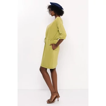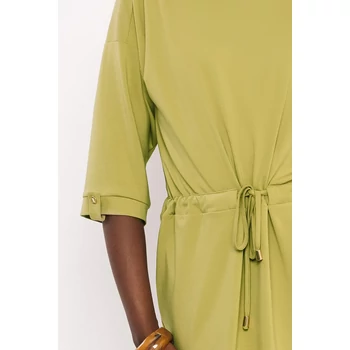 Az AMNESIA Tassy tunika a lezser elegancia egyik legjobb példája. Vékony punto anyagból készült, amely könnyű, rugalmas és kellemes tapintású, így ideális választás mindennapi viseletre. A derékrésznél található megkötő segítségével a derék hangsúlyozható: lazán hagyva kényelmes és bohém, szorosabbra húzva pedig nőiesebb, karcsúsított hatást kelt. Az oliva zöld és fekete színekben elérhető tunika modern, mégis időtlen darab. Háromnegyedes ujját logós pánt díszíti, amely praktikus és stílusos részlet egyben. Az egyméretes kialakítás sokféle testalkathoz illeszkedik, a közepes hossz pedig sokoldalúan kombinálható – viselheted önmagában, leggingsszel vagy akár szűk nadrággal is. |