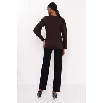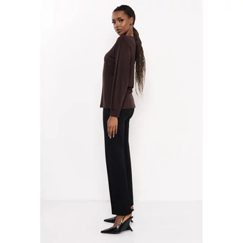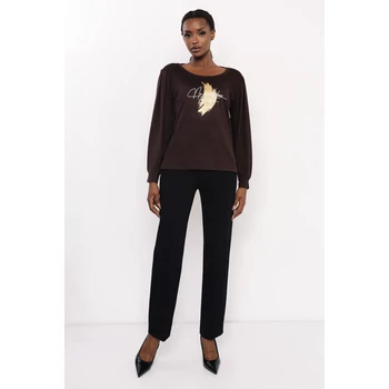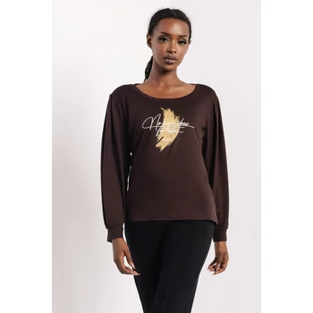 Az AMNESIA Jelissa felső nőies és modern alapdarab, amely elegáns mintájával emeli a hétköznapi szetteket. A viszkóz anyag puha tapintású és lágy esésű, amely komfortos viseletet nyújt, miközben szépen illeszkedik a test vonalához. Fazonját a kerek nyakkivágás, a hosszú ujj és a letisztult szabás határozza meg, amelyet az elején elhelyezett arany színű minta tesz egyedivé. Ekrü és csokoládé színben is elérhető, így könnyen igazítható bármilyen stílushoz. Az apró részletek, mint a mandzsettaszerűen szűkített ujjvégek, finom eleganciát kölcsönöznek ennek a darabnak. Ez a felső remek választás, ha egy különleges, mégis hétköznapi viseletként is hordható darabot keresel. Kombináld AMNESIA nadrágokkal – legyen szó elegánsabb, karcsúsított szabásról vagy lezser fazonról –, hogy a teljes szetted harmóniát és magabiztosságot sugározzon. |
