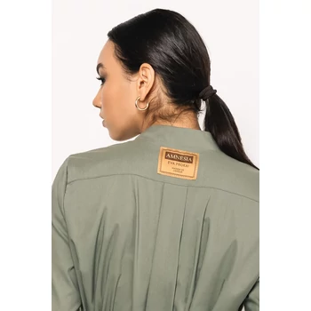 Az AMNESIA Lucas tunika a könnyed elegancia és a praktikus mindennapi stílus tökéletes találkozása. Puplin anyagból készült, amely könnyű, légies esést biztosít, így minden mozdulatnál komfortos viseletet nyújt. A tunika egyméretben elérhető, fekete és khaki színekben, melyek időtállóak és változatos szettek alapját adhatják. Karcsúsított derékrészét a hozzá tartozó öv emeli ki, amely nőies sziluettet formál, míg a végig futó gombolás és a mellzsebek a klasszikus ingfazont idézik. A V-kivágás optikailag nyújtja a felsőtestet, a 3/4-es ujjhossz pedig praktikus és stílusos részlet egyszerre. Viseld magassarkúval elegáns, nőies hatásért, vagy párosítsd sportos kiegészítőkkel a hétköznapokra – az AMNESIA Lucas tunika sokoldalú darab, amely minden gardróbban megállja a helyét. |