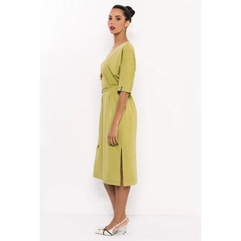 Az AMNESIA Valga ruha a laza elegancia megtestesítője. Vékony punto anyaga könnyed és rugalmas, amely szépen követi a mozdulatokat, miközben kényelmes viselet egész nap. Az egyméretes kialakítás univerzálisan illeszkedik, a derékban megkötős fazon pedig kiemeli a nőies vonalakat és variálhatóvá teszi a megjelenést. Az oliva zöld és fekete árnyalatban elérhető darab egyszerre modern és időtlen, amely tökéletes választás hétköznapokra, irodába vagy akár esti programhoz is. Midi szabása letisztult, mégis különleges, a háromnegyedes ujj pedig kényelmes és praktikus részlet. Egy stílusos alapruha, amit könnyen kiegészíthetsz övvel, táskával vagy statement ékszerekkel. |