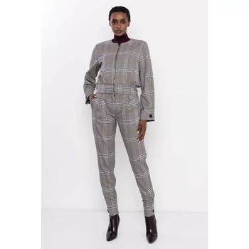 Az AMNESIA Lekon dzseki a klasszikus kockás mintát modern, letisztult szabásvonallal ötvözi. Rövid, derékban gumírozott fazonja szépen formálja az alakot, miközben a strukturált vállrész és a mandzsettás ujjak eleganciát adnak neki. A kerek nyakkivágás és a gallér nélküli kialakítás trendi megjelenést kölcsönöz. Puha, minőségi szövetből készült, amely tartást ad, de kellemes viselet marad egész napra. A cipzáras záródás és a letisztult részletek visszafogott, de karakteres hatást keltenek — ez a dzseki igazi alapdarab, amely sosem megy ki a divatból. Viseld az AMNESIA Jozefa nadrággal teljes szettként az elegáns, összehangolt megjelenésért, vagy kombináld farmerrel és magas sarkúval egy lezserebb, mégis nőies outfithez. Tedd kosárba az amnesia.hu webshopon, és frissítsd vele az őszi stílusod egy pillanat alatt! |