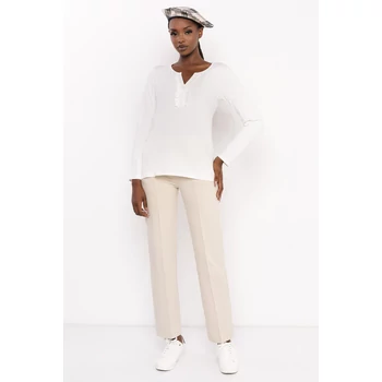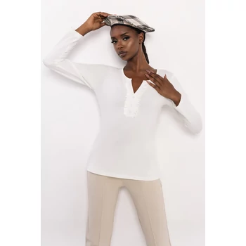 Az AMNESIA Gemi felső letisztult, nőies alapdarab, amely bármely ruhatárba könnyedén beilleszthető. Pamut anyaga kellemes tapintású és komfortos viseletet nyújt, így egész nap ideális választás. Az egyméretes fazon kényelmesen követi a test vonalát, a V-kivágás mentén futó fodros díszítés pedig finom, elegáns részletet kölcsönöz a darabnak. A felső ekrü, vaj és fekete színben érhető el, így többféle stílusban is hordható. A klasszikus szabás és a visszafogott díszítés miatt könnyen kombinálható elegáns nadrággal vagy szoknyával, de sportosabb összeállításban, farmerrel és sneakerekkel is remekül mutat. Ez az a darab, amely egyszerre hozza el az elegancia és a lezser stílus előnyeit. Párosítsd az AMNESIA Gemi felsőt az aktuális őszi kollekció nadrágjaival, ahogy a fotón is látható, és alakíts ki saját stílusodhoz illő szettet. Ha sokoldalú, időtálló alapdarabot keresel, a Gemi felső az amnesia.hu webshopon a legjobb választás számodra! |