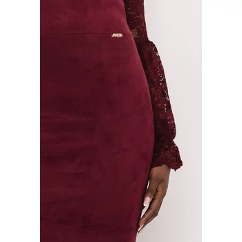 Az AMNESIA Dotio ruha egy igazi különleges alkalmi darab: elegáns, nőies és látványos. A puha velúr és a finom csipke találkozása egyszerre ad modern és klasszikus hangulatot – pontosan azt a fajta kifinomultságot, amit egy ünnepi vagy esti megjelenés megkíván. A fazon karcsúsított, térd fölé érő szabással formálja az alakot, a V-kivágás pedig szépen nyújtja a felsőtestet. A hosszú, csipkés ujjak, a végükön bájos fodorral, elegáns, romantikus karaktert adnak a ruhának. A puha velúr gyönyörűen simul, miközben komfortos viseletet ad. Bordó és fekete színben is elérhető. Styling tipp: viseld letisztult magassarkúval és apró ékszerekkel, hogy a csipke igazán érvényesüljön. Hűvösebb estékre jól mutat hozzá egy rövid fazonú AMNESIA kabát vagy műszőrme mellény is. Ha egy igazán nőies, alkalmi ruhát keresel, amiben magabiztosnak érzed magad, a Dotio ruha nem fog csalódást okozni — fedezd fel az amnesia.hu webshopon! |