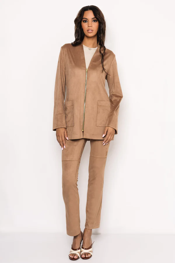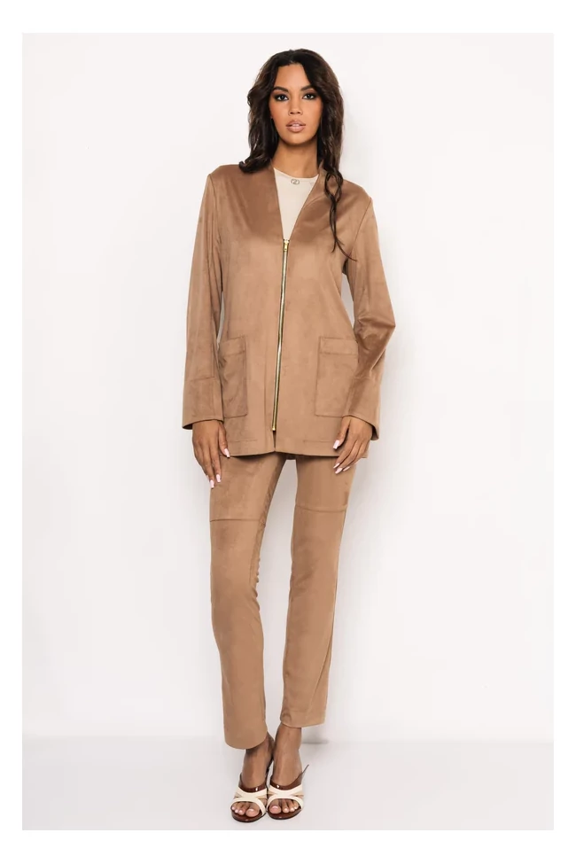 A velúr anyag a női ruhák egyik legnépszerűbb választása, amely az őszi-téli kollekciókban különösen kedvelt. Bársonyosan puha tapintása és elegáns, finom felülete luxus hatást kölcsönöz minden darabnak. Kényelmes viselet és stílusos választás, amely kiemeli az öltözék különlegességét.