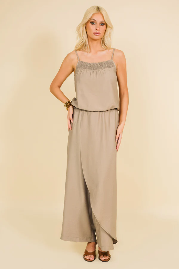 Az AMNESIA Zalim nadrág a nyári stílus egyik alapdarabja: természetes len anyaga és laza szabása tökéletes választás meleg napokra. A magasított derék és az átlapolt, lágyan leomló szárak nőies sziluettet rajzolnak, miközben maximális kényelmet biztosítanak. A szezám és pezsgő árnyalatok minden ruhatárba könnyedén beilleszthetők – viseld hozzá illő Laky toppal vagy bodyval a kifinomult, mégis effortless megjelenésért.