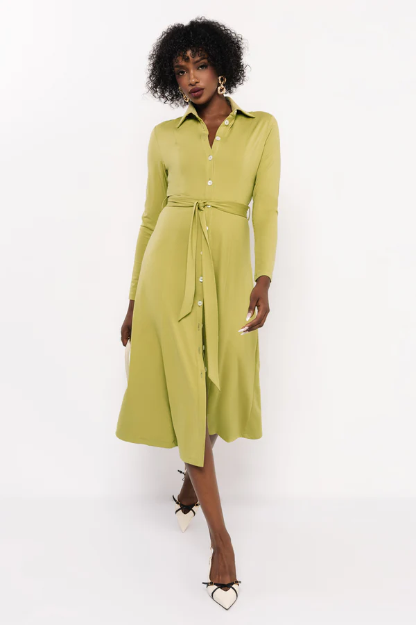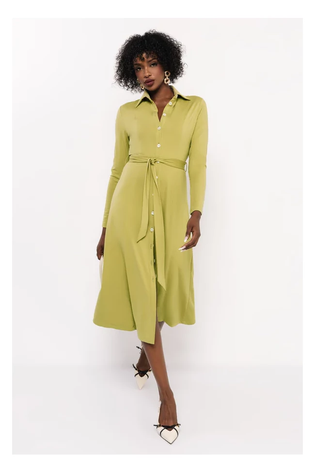 Az AMNESIA Zidi ruha a klasszikus ingruhát értelmezi újra nőies és modern formában. Vékony punto anyaga könnyű és rugalmas, amely kényelmes viseletet biztosít egész nap, miközben szépen követi a tested. Az egyméretes kialakítás univerzálisan illeszkedik, a gombos eleje és a levehető öv pedig variálható stílust ad: viselheted szorosabbra húzva a nőies sziluettért, vagy lazábban, lezser hangulatban.